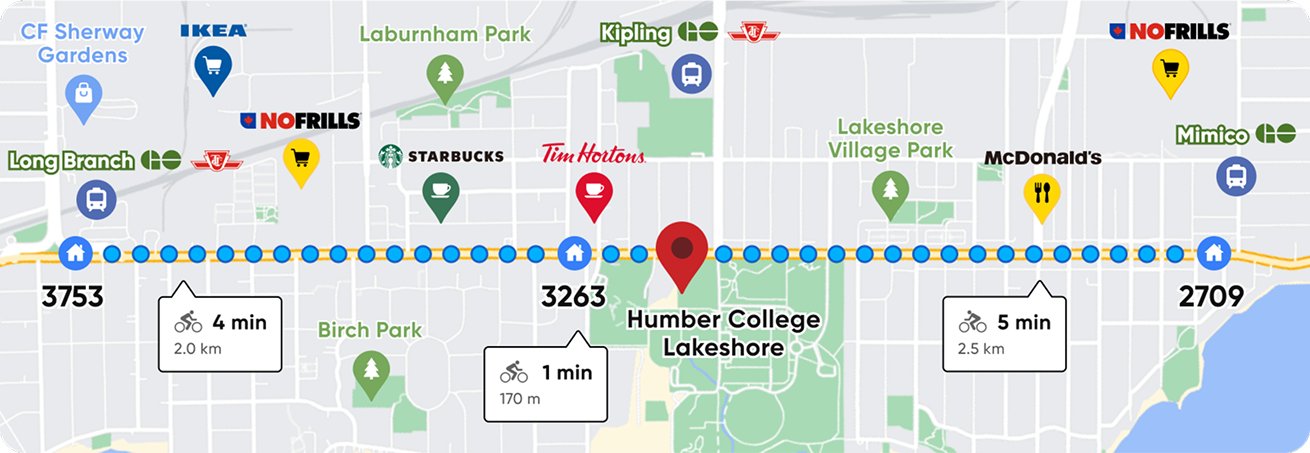 Whether you’re commuting to campus, downtown Toronto, or weekend getaways, our buildings are ideally located near major transit lines: